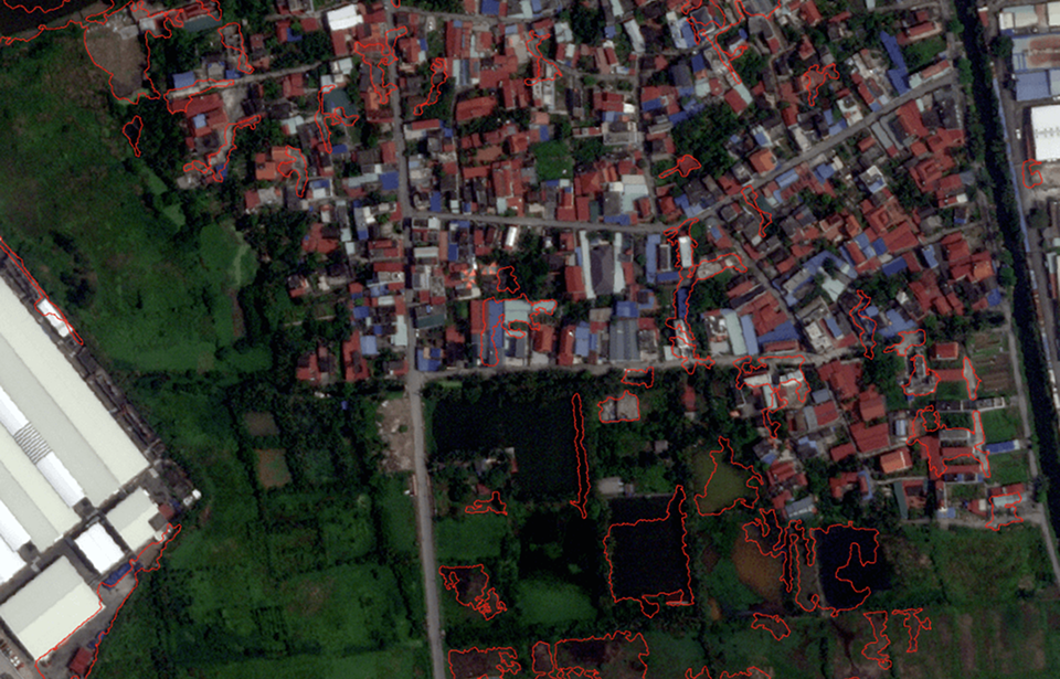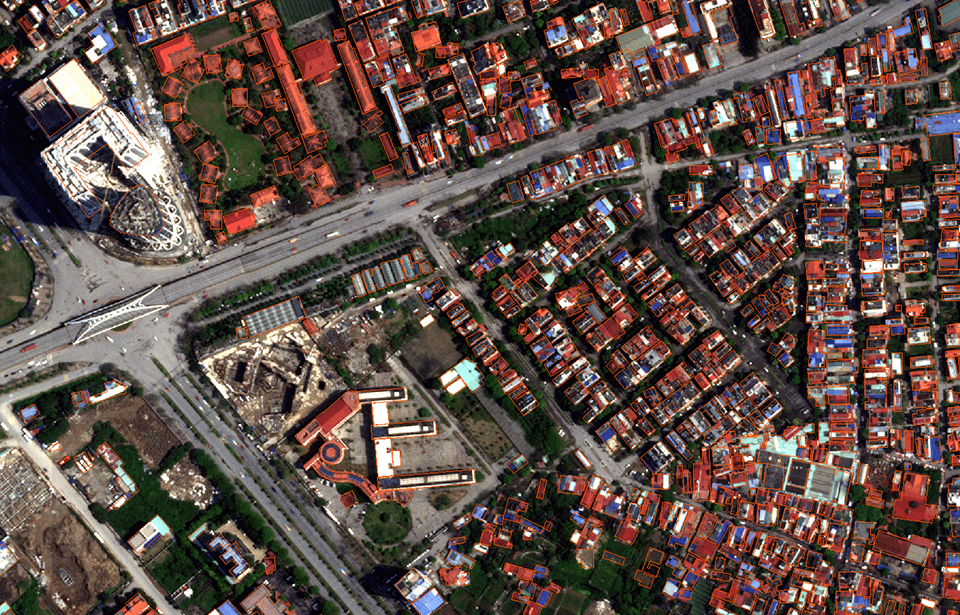 This is an application that uses object recognition technology from high-resolution remote sensing images. The application provides detailed information on the number of houses and their sizes in urban areas.